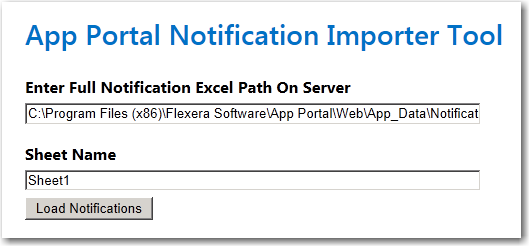 http://APPPORTALSERVER/esd/ImportNotificationStrings.aspx- The App Portal Notification Importer Tool page opens: