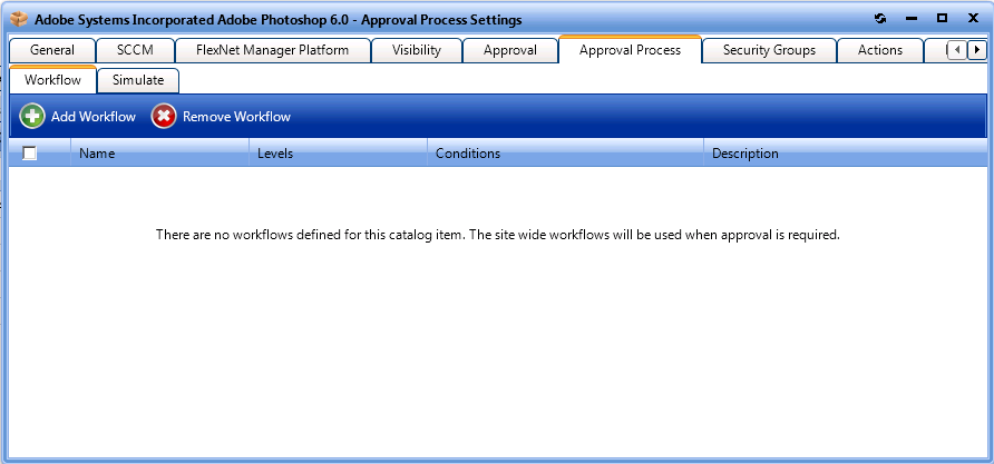 - To view a simulation of the approval process for this catalog item, open the Simulate subtab.