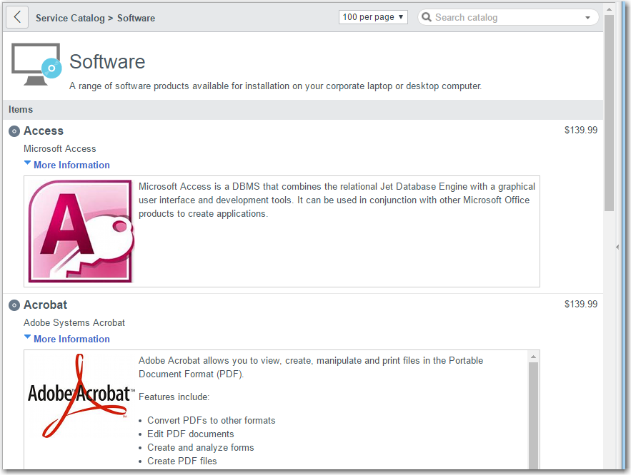 - Click on the catalog item you wish to obtain. The detailed view of that catalog item opens.