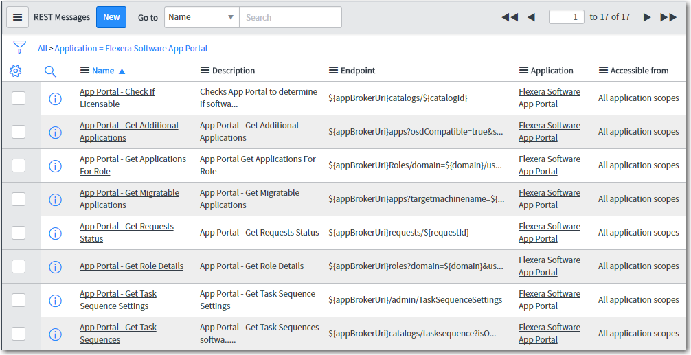 - Under Flexera Software App Portal in the menu, click on Rest Messages . The Rest Messages view opens.