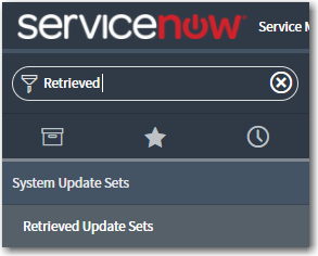 - In the search results, click Retrieved Update Sets . The Retrieved Update Sets page opens.
