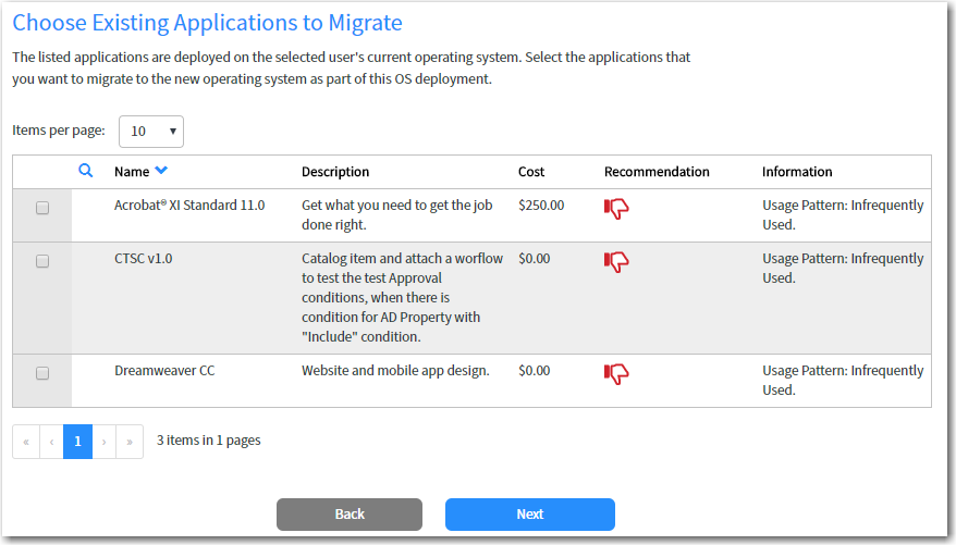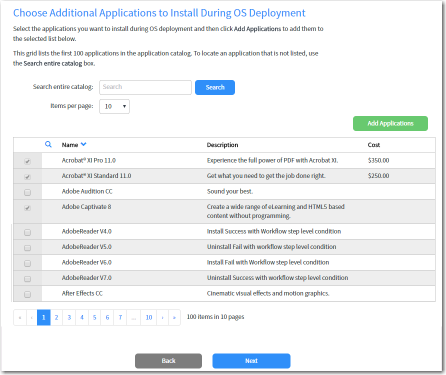 14. Select the applications that you want to migrate and then click Next . The Choose Additional Applications to Install During OS Deployment panel opens. Applications that have already been selected in previous panels are already selected and cannot be unselected.