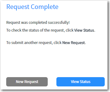 17. Click Submit Request . The request is submitted and the Request Complete panel opens.