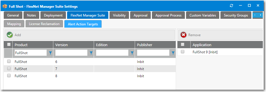 3. Use the filter fields in the columns to search the FlexNet Manager Suite database for the application(s) that you want to target.