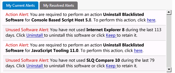 - Now that you have resolved alerts, check the Software Policy Score chart on the My Apps tab. Each time you resolve an alert, your Software Policy Score improves. Your goal is to have 100% of your applications in the No Alerts category.