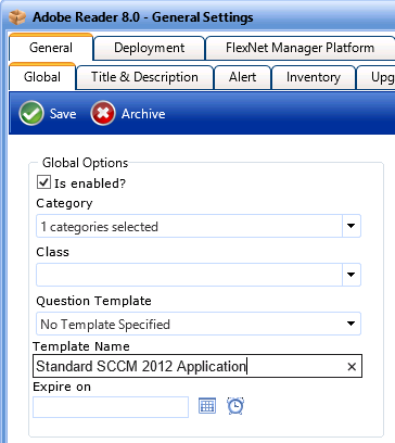 4. On the General > Global tab, enter a name for the template in the Template Name text box.
